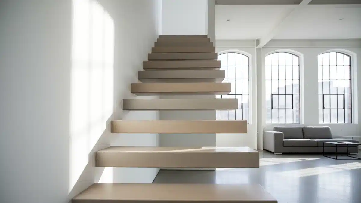L'escalier suspendu redéfinit la circulation verticale dans l'habitat contemporain : il allège visuellement l'espace, amplifie la lumière naturelle et s'impose comme un élément architectural à part entière. Loin d'être un simple équipement fonctionnel, c'est une pièce maîtresse du design d'intérieur minimaliste, capable de transformer radicalement la perception d'un volume.